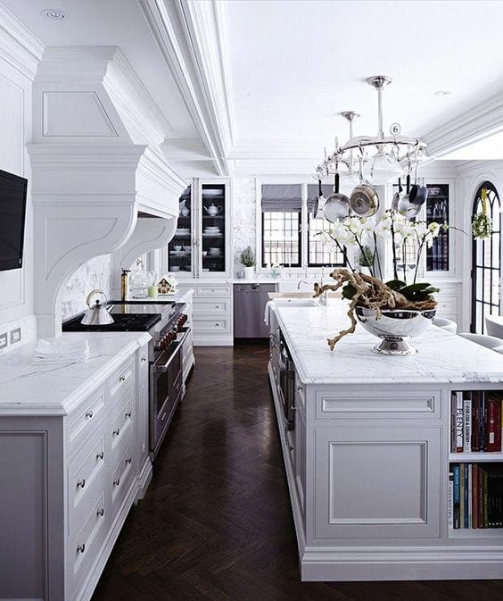 Hamptons style reflects refined elegance with a coastal influence. Traditionally Hampton’s themes incorporate neutral colour palettes, including white, ivory and neutral colours with touches of blue and grey tones. In terms of cabinetry, simple lines integrated with French provincial influence help complete the design.