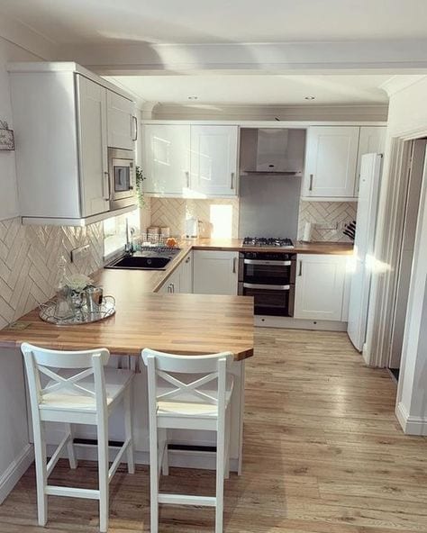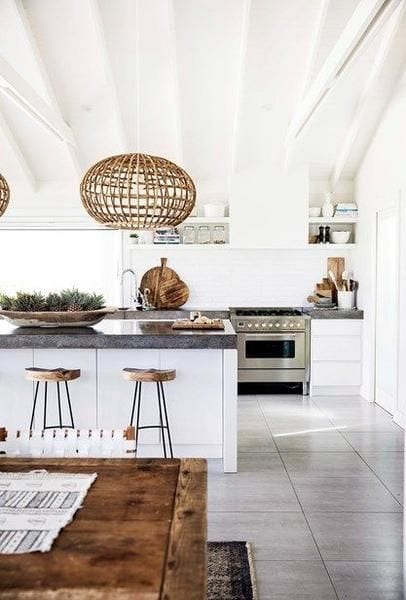If you’re looking to incorporate a natural creative theme with open shelving and mixed patterns and textures, a boho themed kitchen might be for you. Adding vintage and rattan touches can also help finish the overall feel. Bohemian décor originated from central-eastern Europe, commonly adopted by nomads and creatives. For a complementing look, use a light colour scheme with a contrasting texture like timber and potted plants to help establish more atmosphere.