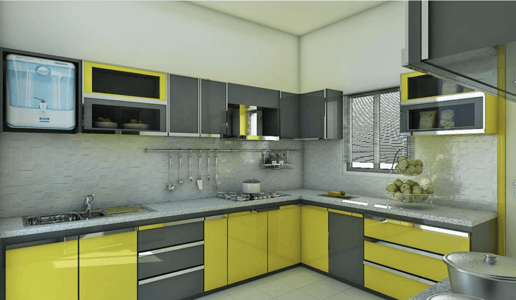 9. Grey and Yellow Kitchen